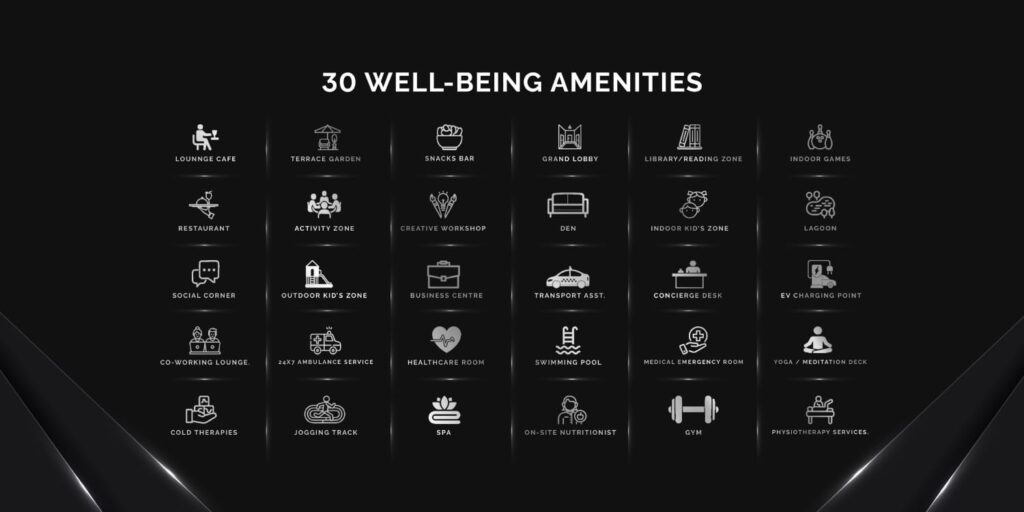✔ Jogging & Walking Track ✔ Indoor Games Area ✔ Outdoor Sports Courts ✔ Shopping Complex