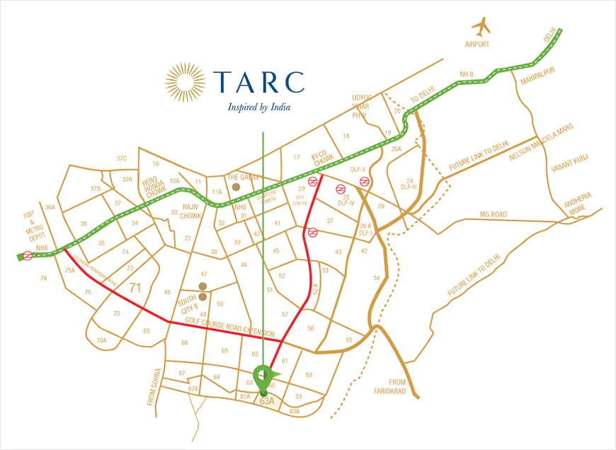 • Nearby institutions: Top schools (Heritage Xperiential, Millennium School, DPS, Amity), hospitals (Medanta, Fortis, Max, CK Birla) and malls (Worldmark, Ardee Mall, Airia, etc.)