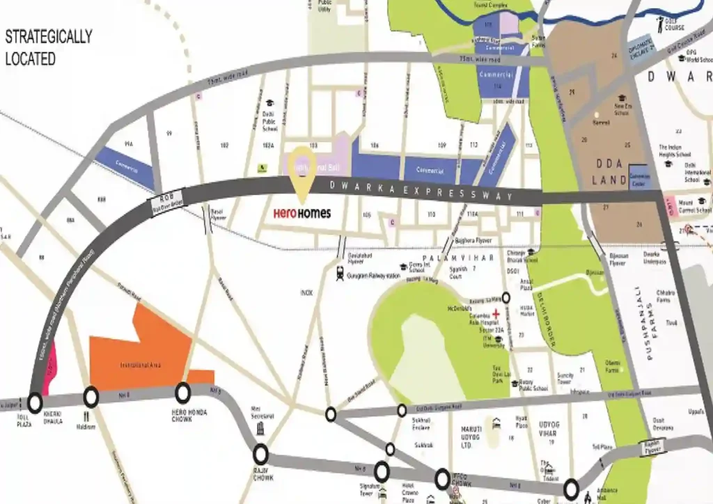 Direct frontage of over 950 feet on the Dwarka Expressway, providing seamless access to Delhi, the IGI Airport, and major business hubs.